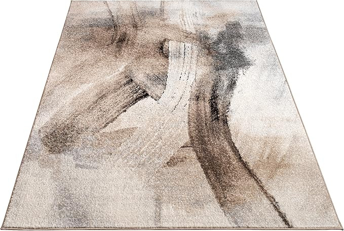 Paco Home Designer Rug with Artful Brushstroke Effect in Cream, Brown, Black
